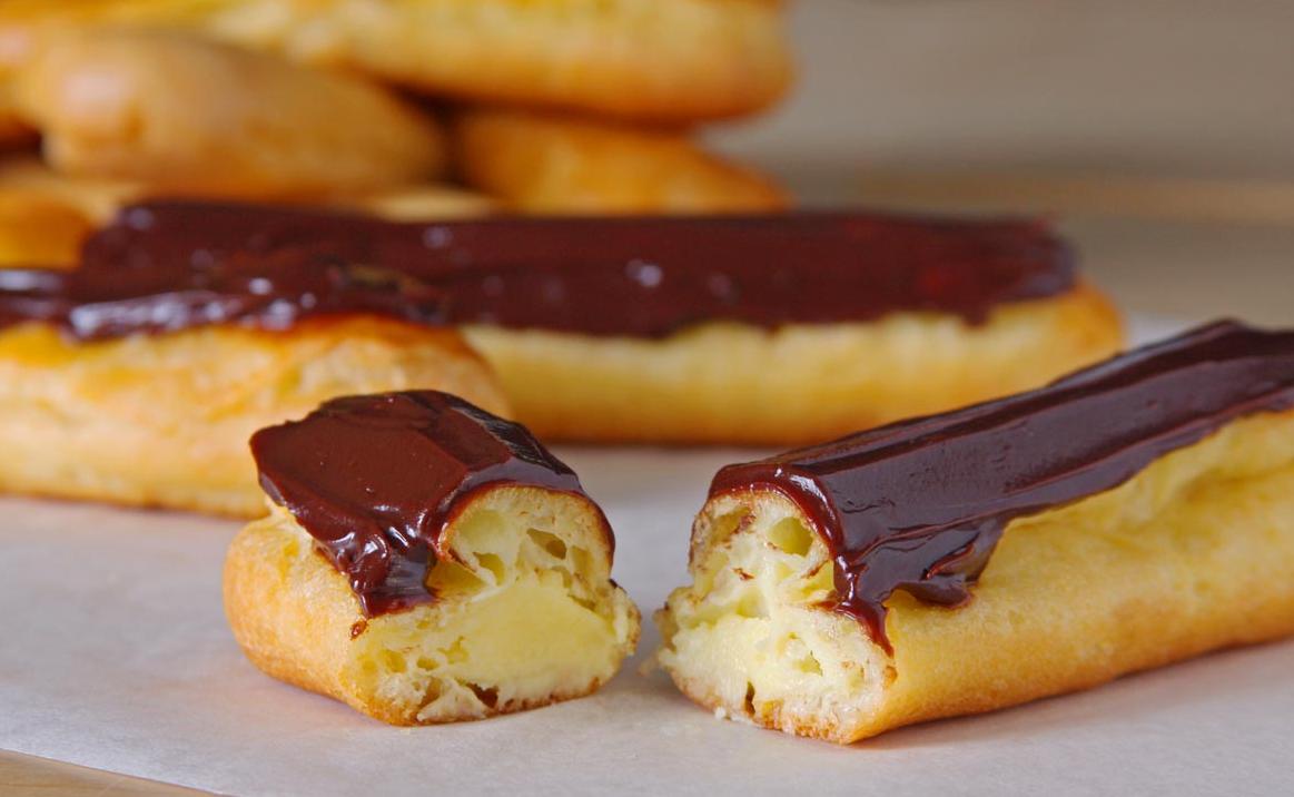 Eclerul cu garnitură de cremă de vanilie, decorată cu un strat de cacao va îndeplini poftele oricui. Chiar dacă este un desert tipic, e numai bun pentru clienții reticenți la nou.